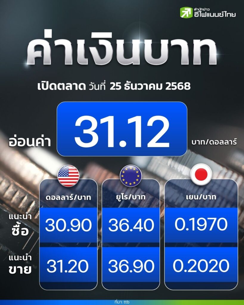ค่าเงินบาทวันนี้ ประจำเดือนธันวาคม 2568