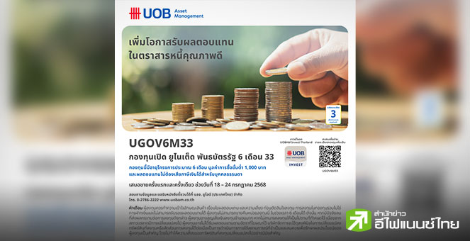 star_borderModal Upgrade PackageModal Upgrade Packageบลจ.ยูโอบี เสนอโอกาสลงทุนในพันธบัตรภาครัฐ กองทุนเปิด ยูไนเต็ด พันธบัตรรัฐ 6 เดือน 33 (UGOV6M33) IPO 18-24 ก.ค.6818 ก.ค. 2568 11:47 น.