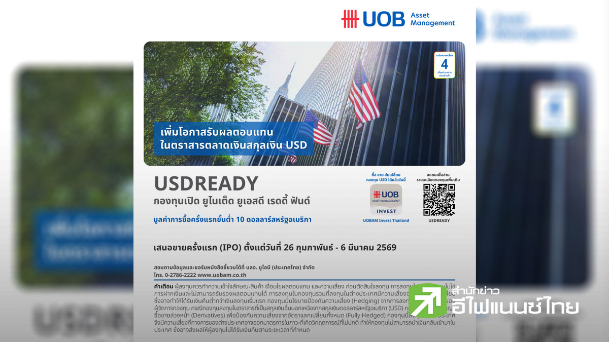 star_borderModal Upgrade PackageModal Upgrade Packageบลจ.ยูโอบี เสนอขายกองทุน USDREADY ลงทุนในตราสารตลาดเงินคุณภาพสูง IPO 26 ก.พ.–6 มี.ค.6926 ก.พ. 2569 16:32 น.