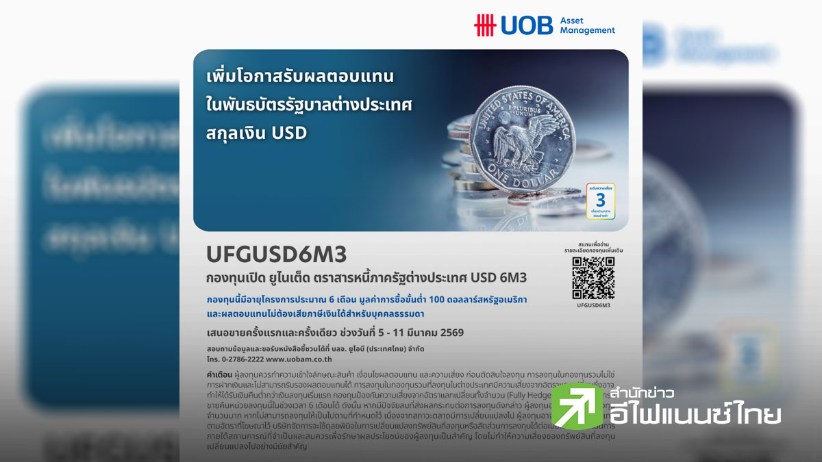 star_borderModal Upgrade PackageModal Upgrade Packageบลจ.ยูโอบี เสนอขายกองทุน UFGUSD6M3 ลงทุนในพันธบัตรภาครัฐบาลต่างประเทศสกุลเงินดอลลาร์สหรัฐ5 มี.ค. 2569 12:02 น.