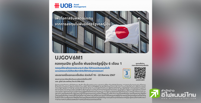 • บลจ.ยูโอบี เปิดเสนอขายกองทุน UJGOV6M1 เน้นลงทุนในพันธบัตรญี่ปุ่น IPO 16-22 ส.ค.67
