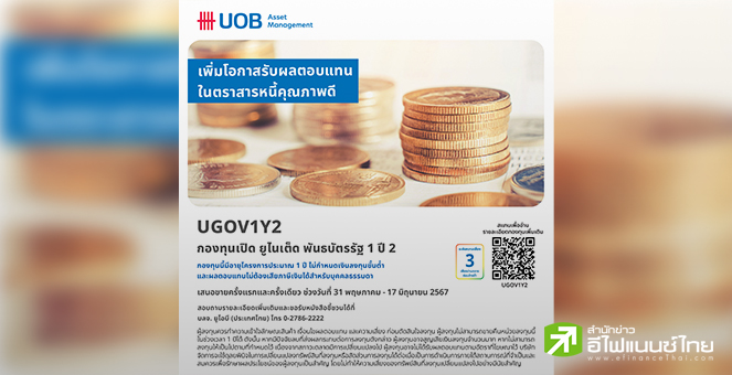 • บลจ.ยูโอบี เสนอขายกองทุน UGOV1Y2 เน้นลงทุนในพันธบัตรภาครัฐ IPO 31 พ.ค.–17 มิ.ย.67