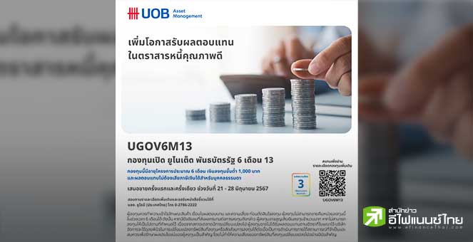 บลจ.ยูโอบี เสนอขายกองทุน UGOV6M13 เน้นลงทุนในพันธบัตรภาครัฐ IPO 21-28 มิ.ย. 67